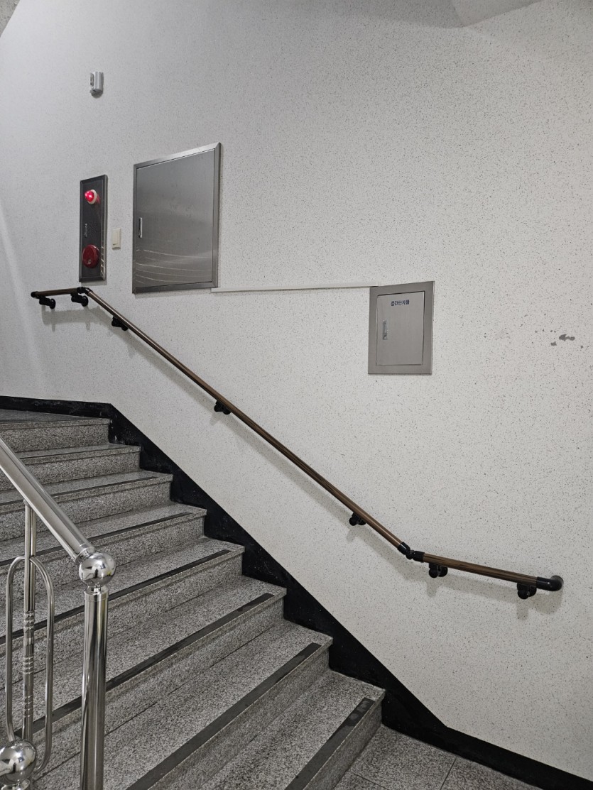 어린이나 노약자 이용이 많은 계단실에 핸드레일을 설치하여